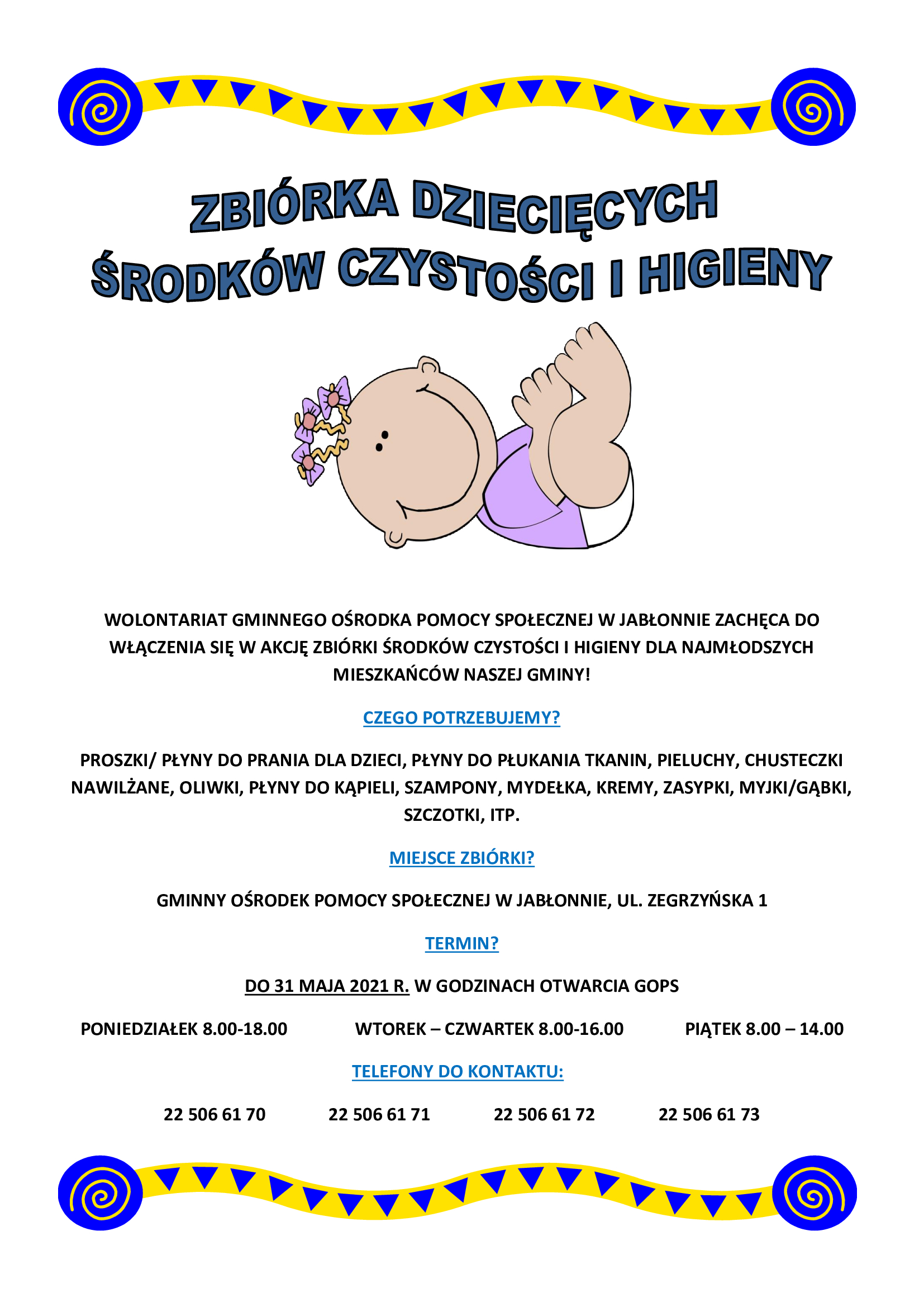 Wolontariat GOPS w Jabłonnie zachęca do włączenia się w akcję zbiórki dla najmłodszych Mieszkańców Gminy Jabłonna.