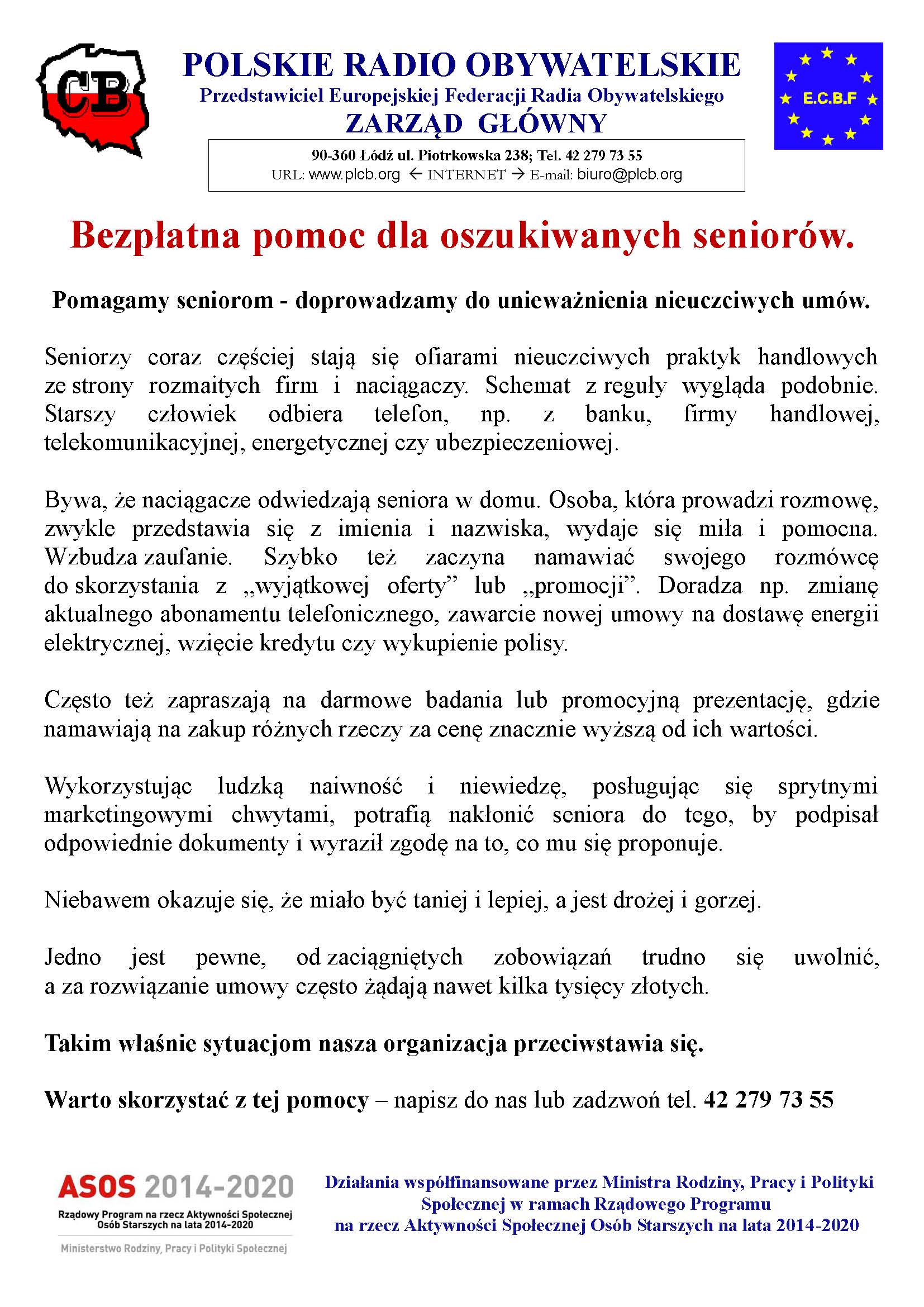 Bezpłatna pomoc dla oszukiwanych seniorów