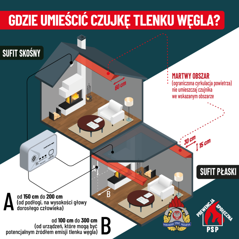 Państwowa Straż Pożarna rekomenduje instalowanie czujek dymu i tlenku węgla.