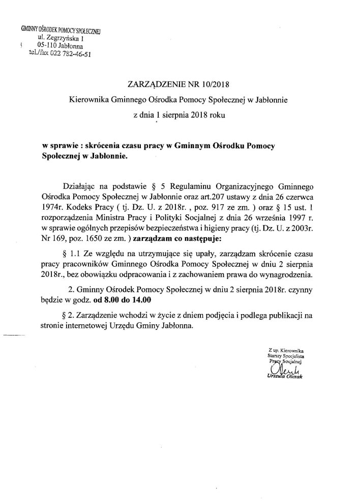 W czwartek 2 sierpnia GOPS w Jabłonnie będzie czynny w godzinach 8:00 - 14:00.