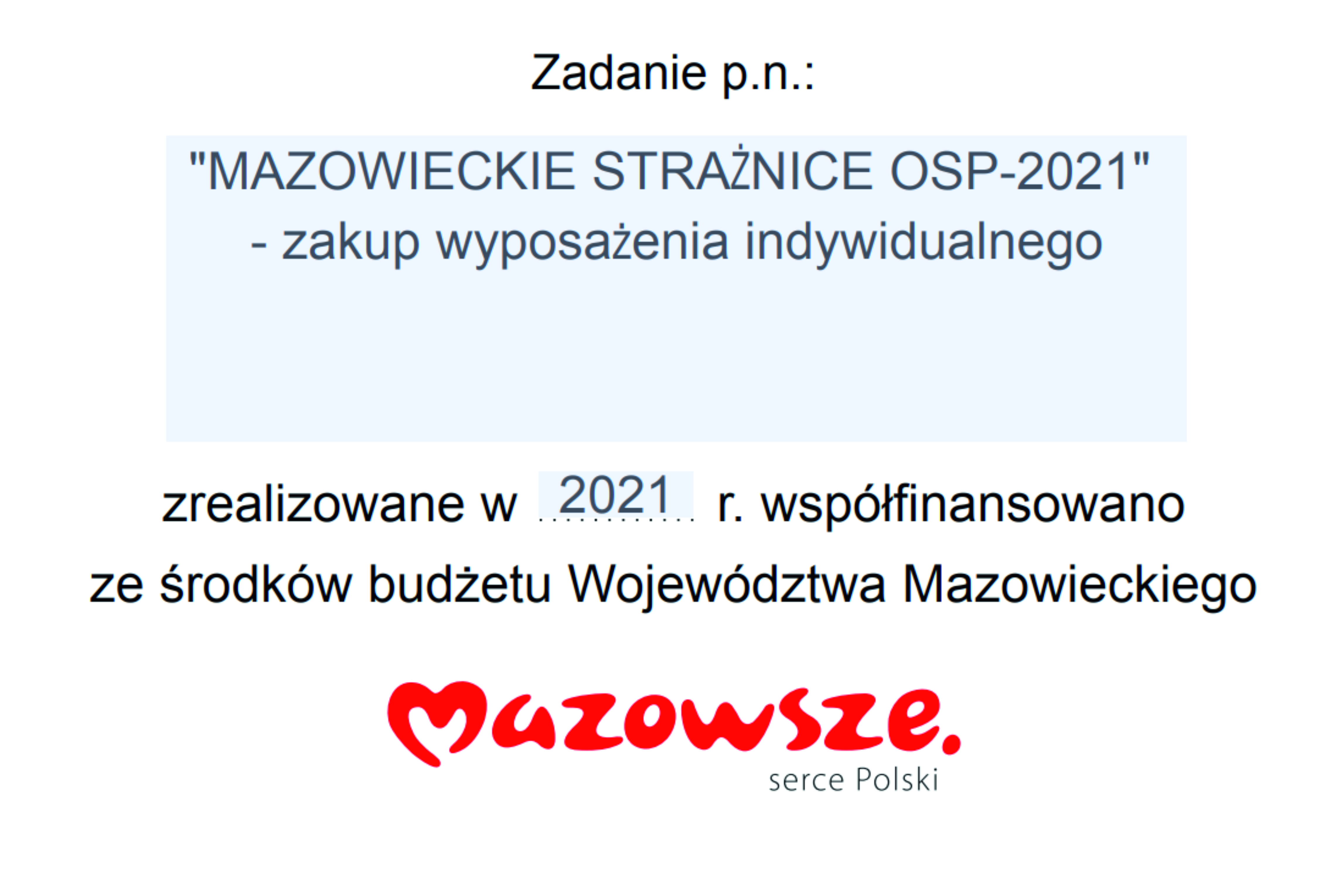Projekt pn.: „MAZOWIECKIE STRAŻNICE OSP-2021” - zakup wyposażenia indywidualnego